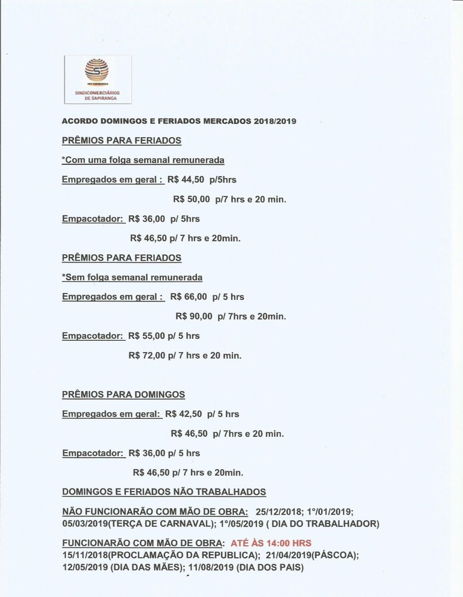 Acordo domingos e feriados 2015-2016